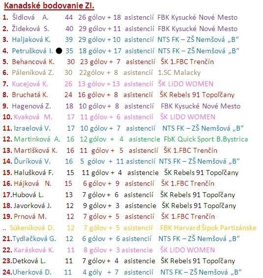 - Spišská N. Ves : OA TN 4:5 (góly: K. Čuboňová 1, I. Petrúšková 1, K. Haljaková 2)